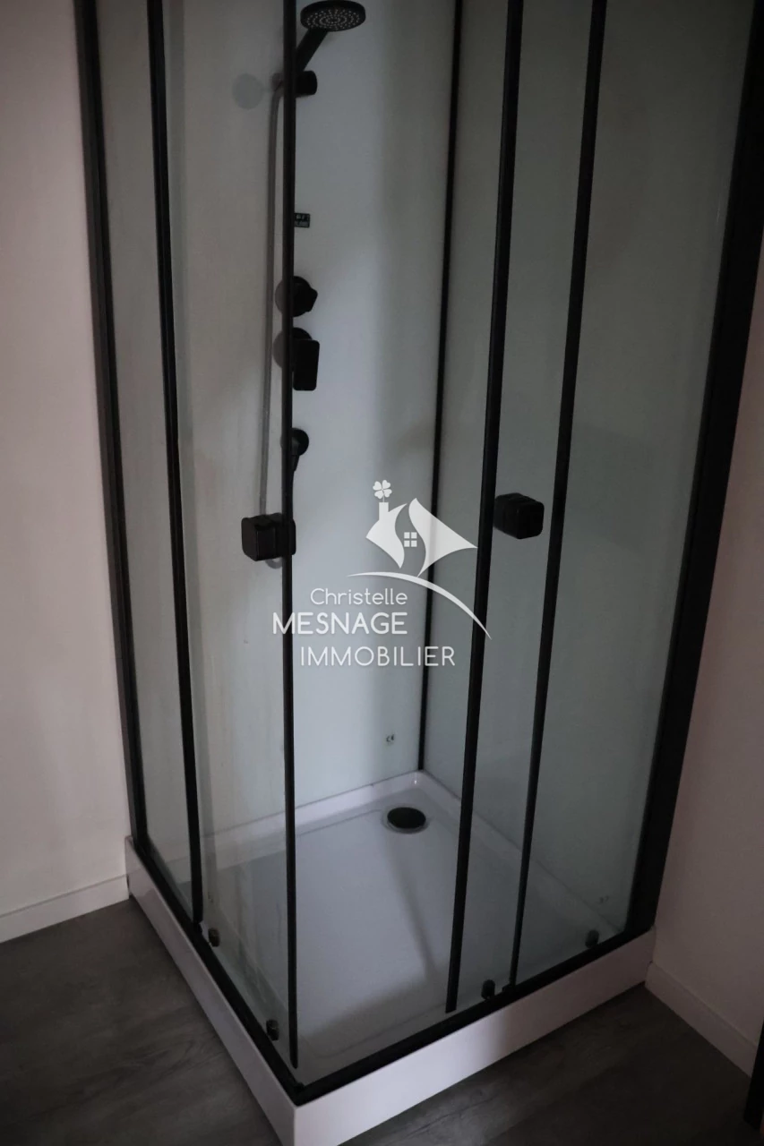 À louer chez Christelle Mesnage, DINAN centre-ville - Belle maison en pierre de 55m², totalement refaite à neuf, offrant : une cuisine équipée ouverte sur le séjour au rez-de-chaussée, une chambre avec salle d'eau et wc au 1er étage, une chambre avec poutres apparentes, salle d'eau et wc au 2ème étage. Une courette sur le devant, stationnement parking juste à côté.
